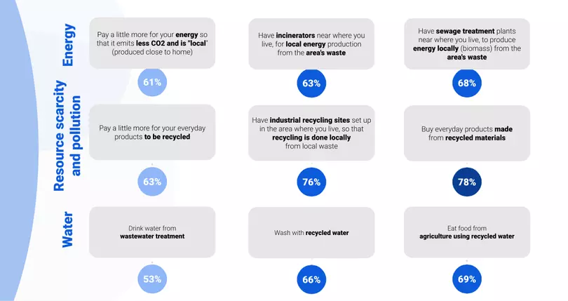 Across many topics covered in the barometer, a clear consensus is emerging towards the green solutions that were tested and a strong level of acceptance of the changes required to implement them (whether for initiatives related to energy, resource protection or water).