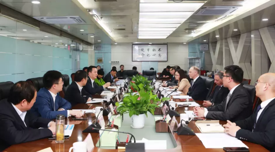 4月27日,必威官方首页官网电话查询号码中国首席执行官汪豪铭Mark VENHOEK与安徽省铜陵市委副书记、市长孔涛在铜陵市行政中心会面,双方就加强沟通交流、深化务实合作等事宜进行了洽谈。